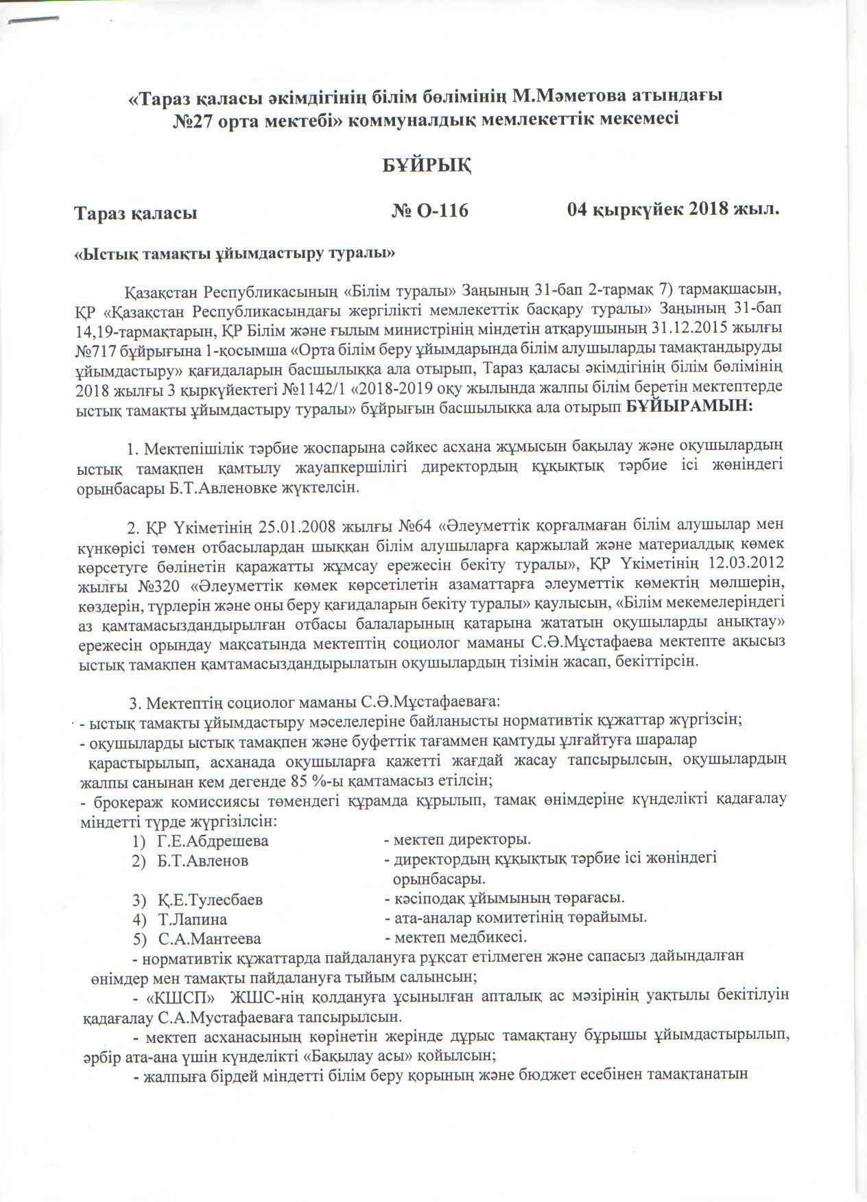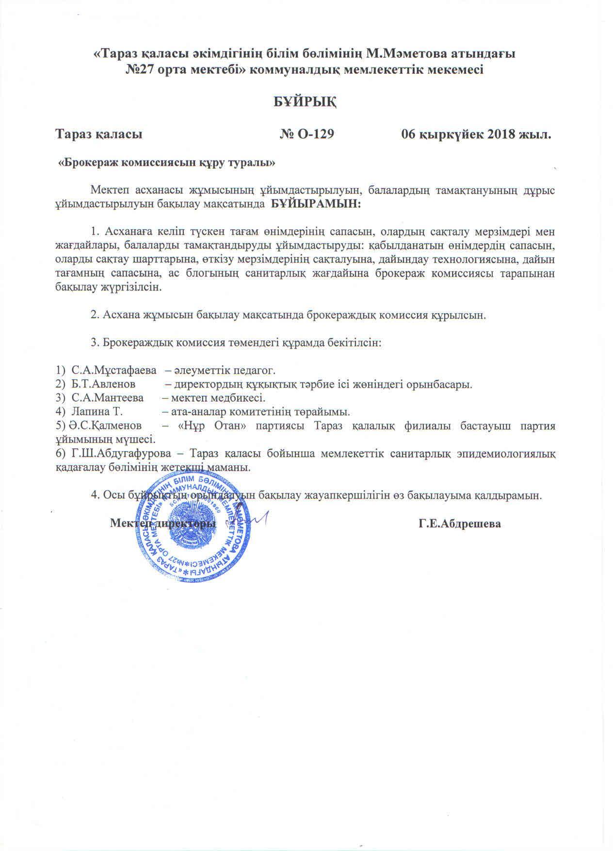 Бұйрық » СШ №27