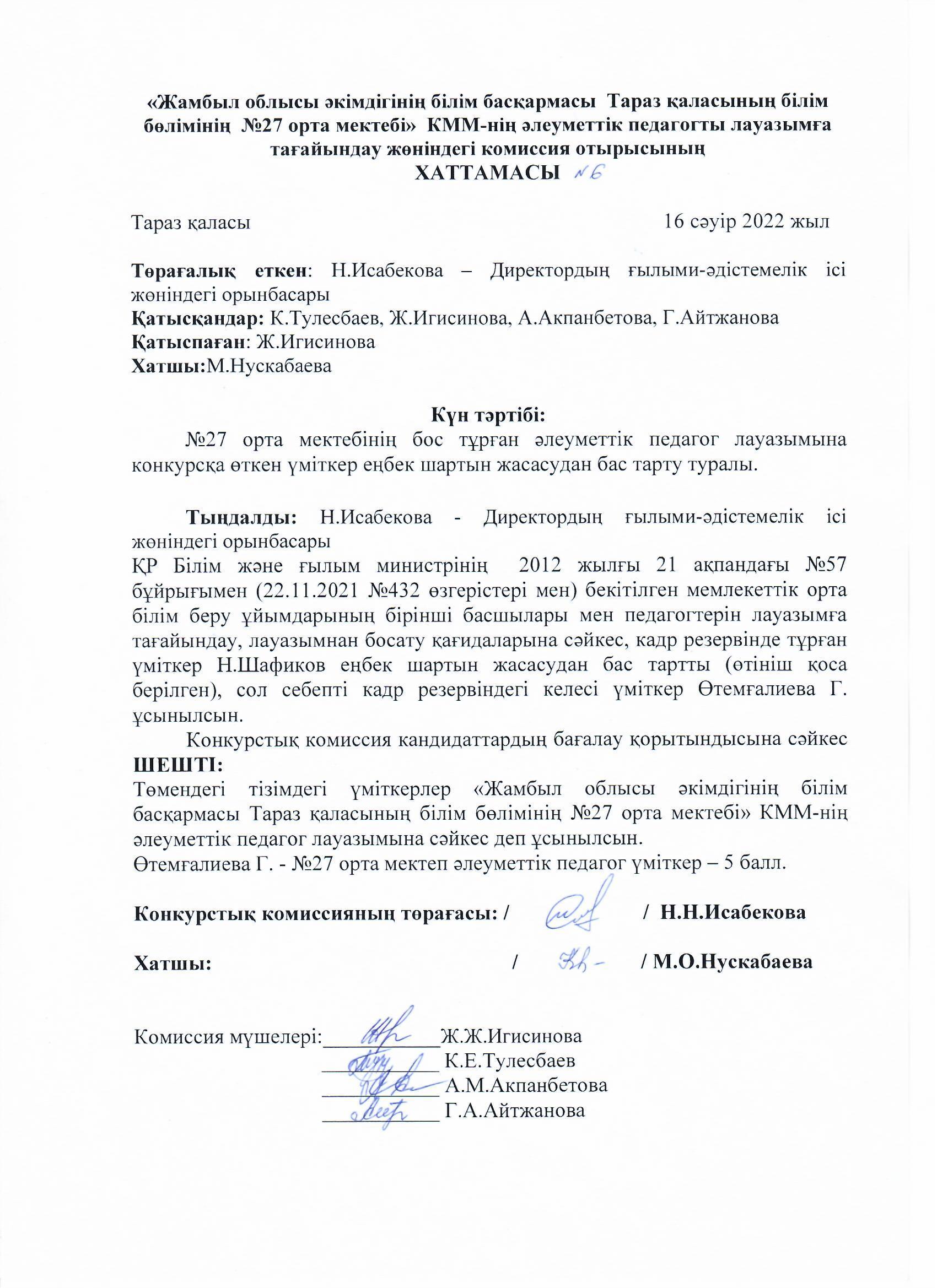 18 сәуір 2022 0 1 2 3 4 5 Педагог лауазымына қабылдау конкурсының хаттамасы Осы беттің QR-коды:QR-код этой страницы: