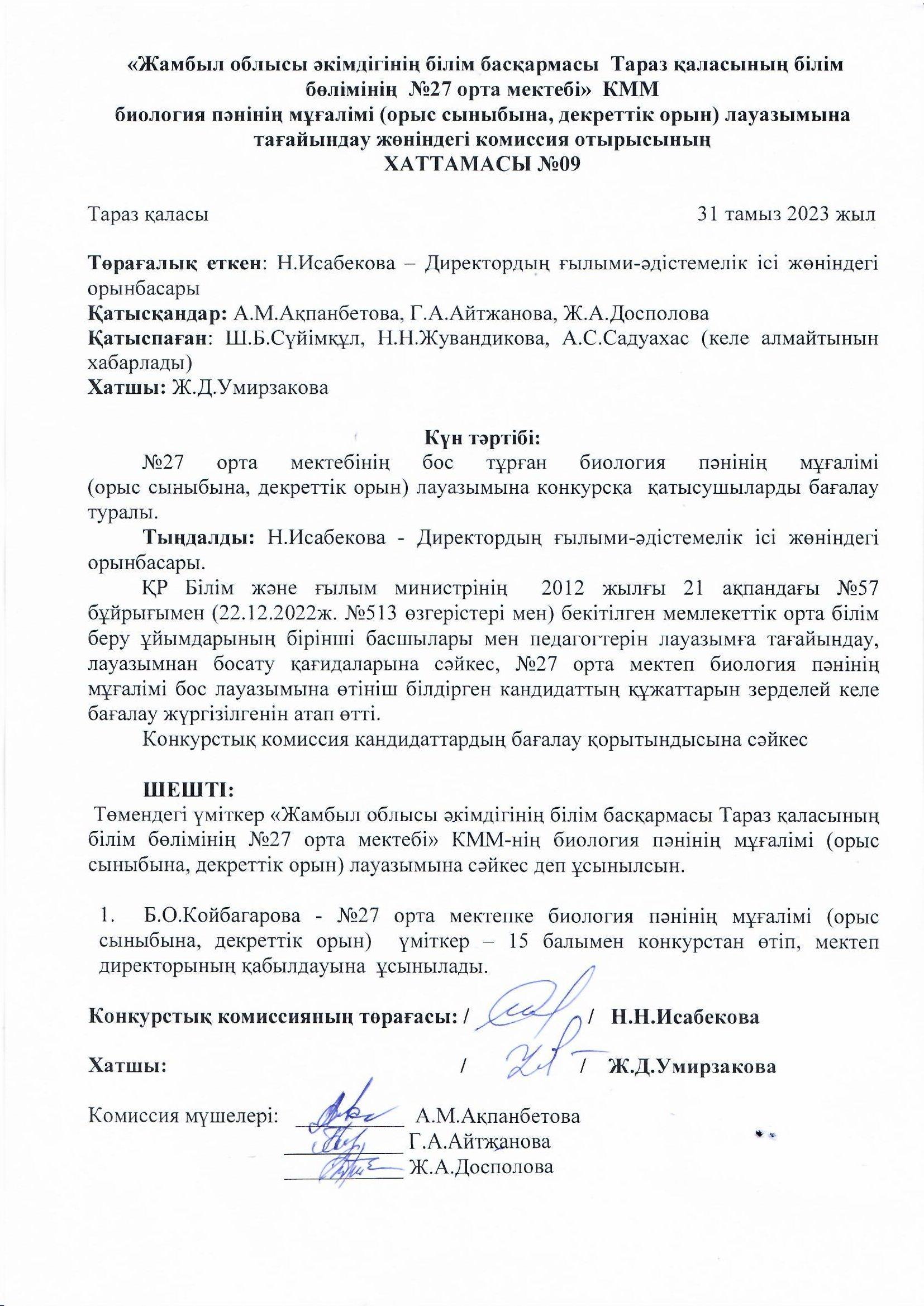 31 тамыз 2023 0 1 2 3 4 5 Педагог лауазымына қабылдау конкурсының хаттамасы Осы беттің QR-коды:QR-код этой страницы: