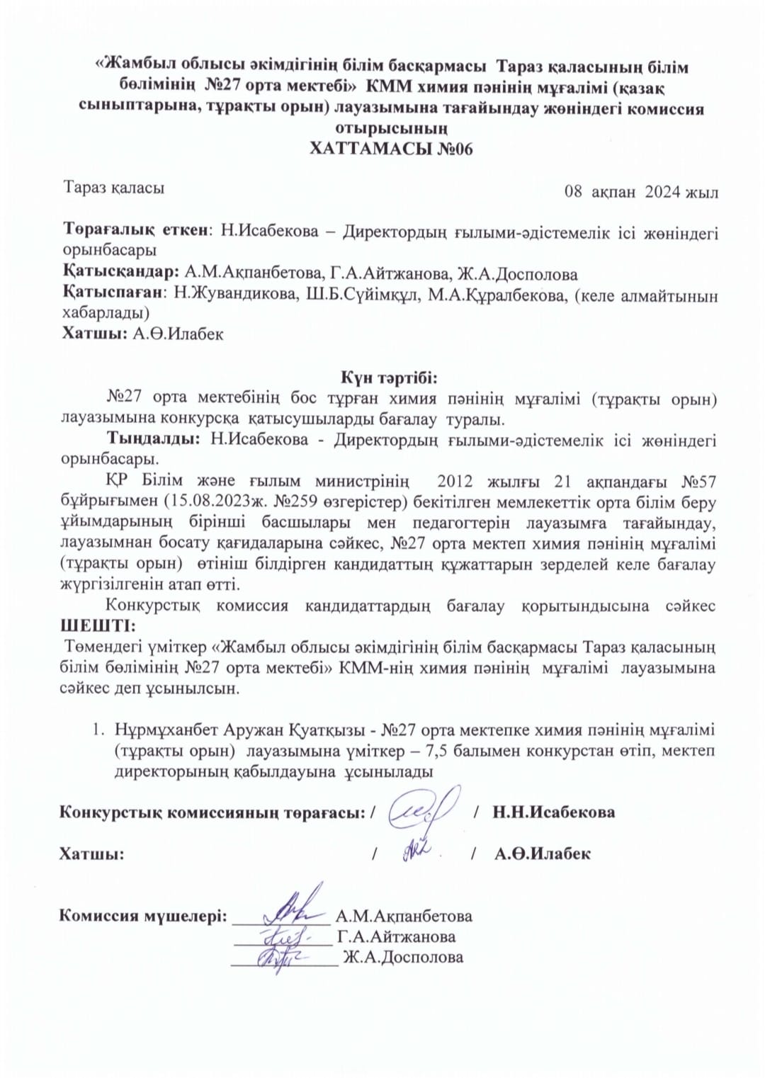 08 ақпан 2024 0 1 2 3 4 5 Педагог лауазымына қабылдау конкурсының хаттамасы Осы беттің QR-коды:QR-код этой страницы: