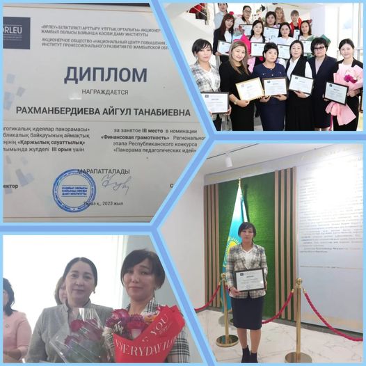"Педагогикалық идеялар панорамасы" Республикалық байқаудың аймақтық кезеңінің "Қаржылық сауаттылық" аталымында жүлделі ІІІ орын иеленген бастауыш сынып мұғалімі Рахманбердиева Айгул Танабиевнаны жеңіспен құттықтаймыз!!!
