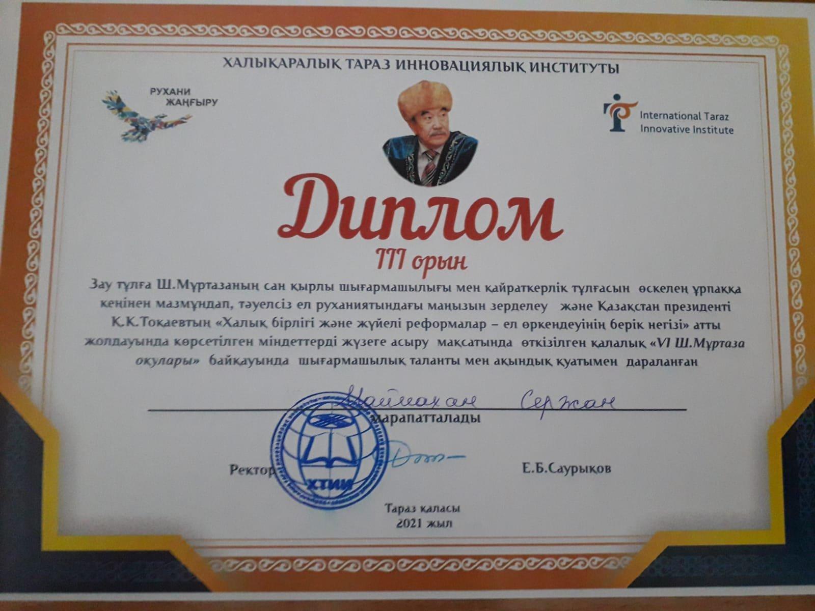 15 қазан 2021 0 1 2 3 4 5 Шерхан оқуларының «Зау тұлға» бағытындағы жеңімпазы Осы беттің QR-коды:QR-код этой страницы: