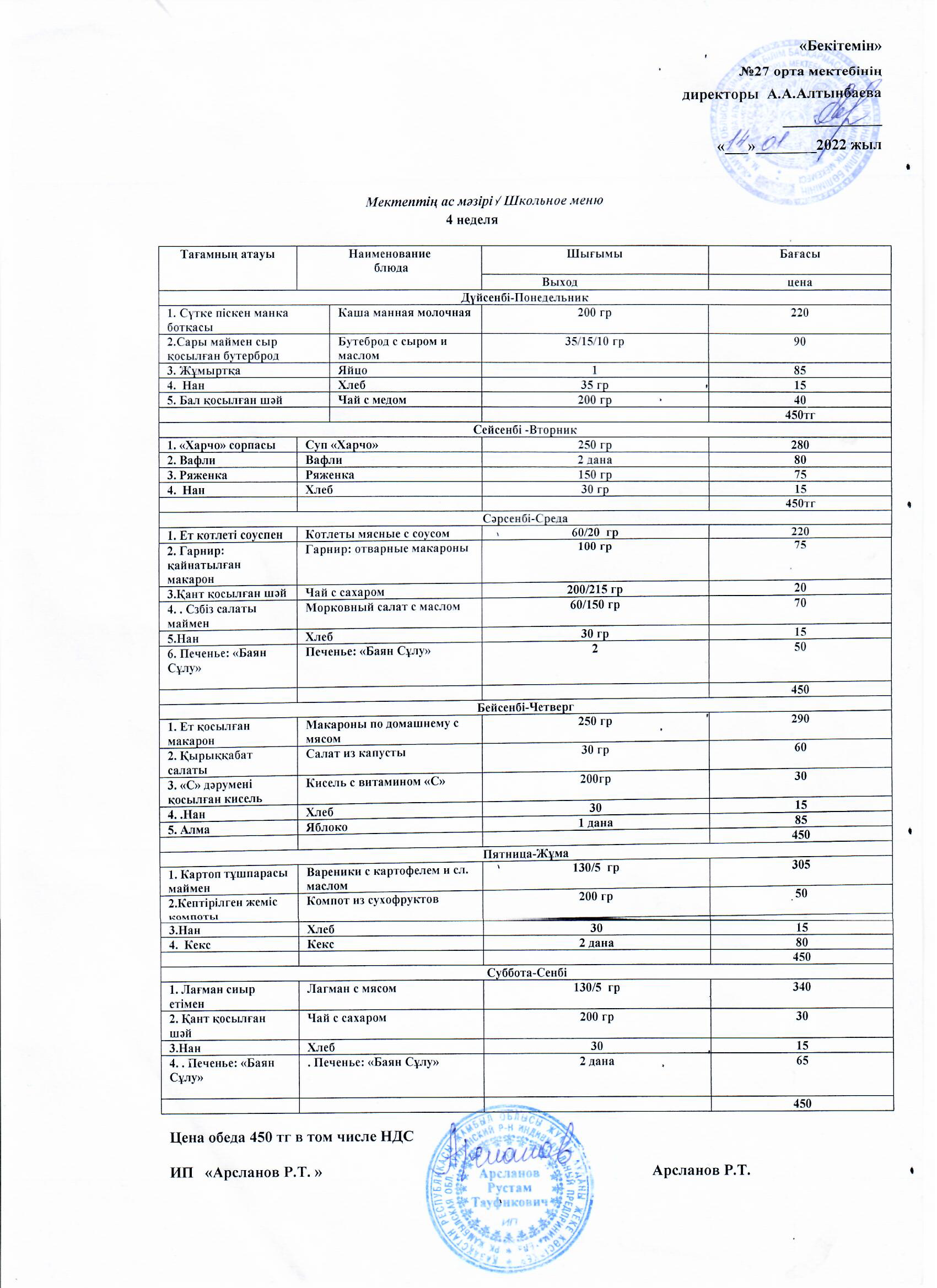 28 қаңтар 2022 меню
