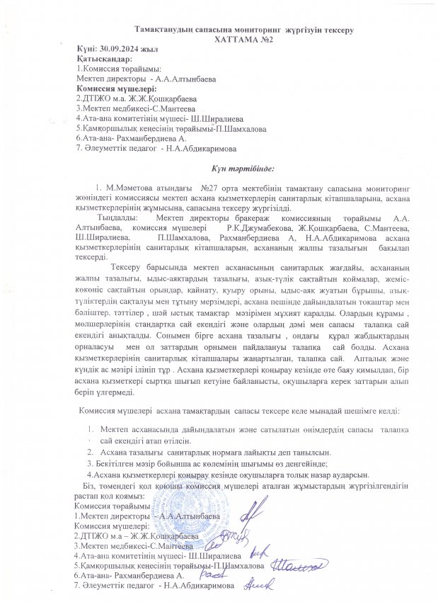 12 қыркүйек 2024 0 1 2 3 4 5 Тамақтану сапасына мониторинг жүргізу. Қыркүйек 2024-2025 оқу жылы. Осы беттің QR-коды:QR-код этой страницы: