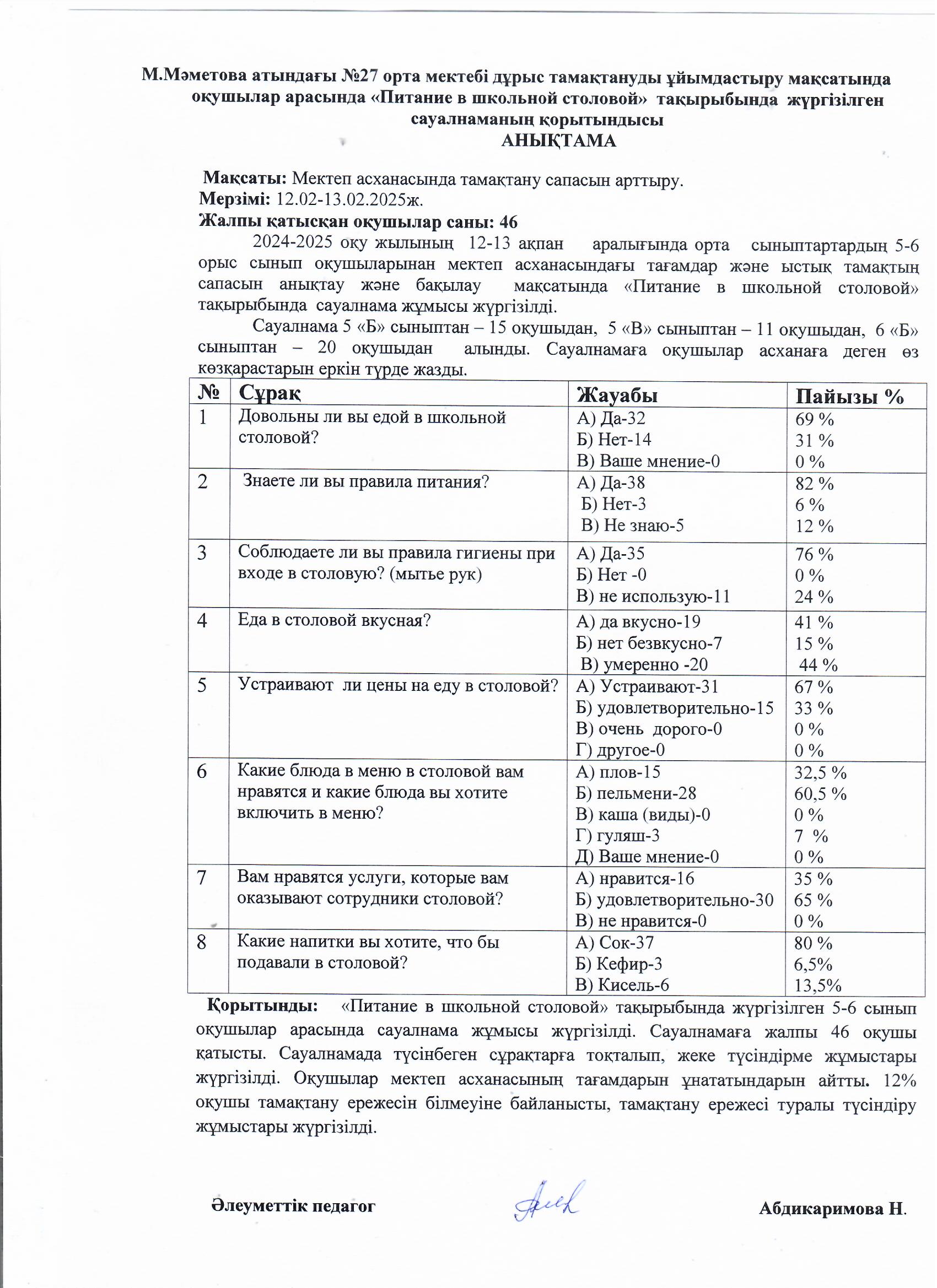 13 ақпан 2025 0 1 2 3 4 5 "Питание в школьной столовой" 5-6 сауалнама ақпан 2025жыл Осы беттің QR-коды:QR-код этой страницы: