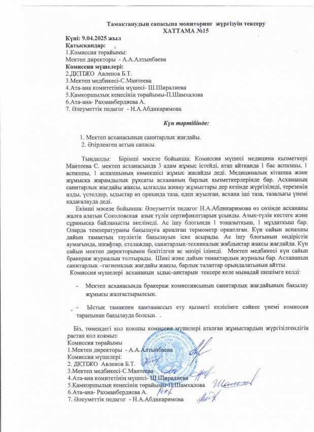 17 сәуір 2025 0 1 2 3 4 5 Тамақтану сапасына мониторинг жүргізу сәуір 2024-2025 жыл Осы беттің QR-коды:QR-код этой страницы: