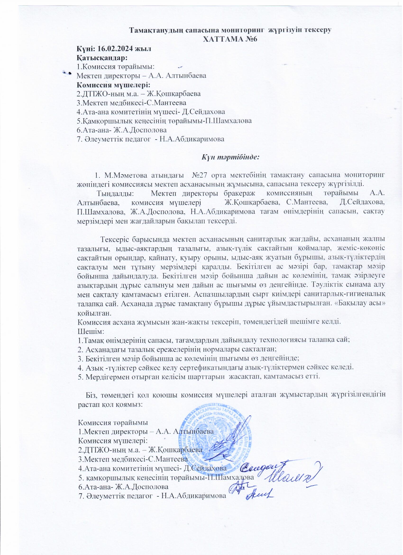 16 ақпан 2024 0 1 2 3 4 5 Тамақтану сапасына мониторинг жүргізу Осы беттің QR-коды:QR-код этой страницы: